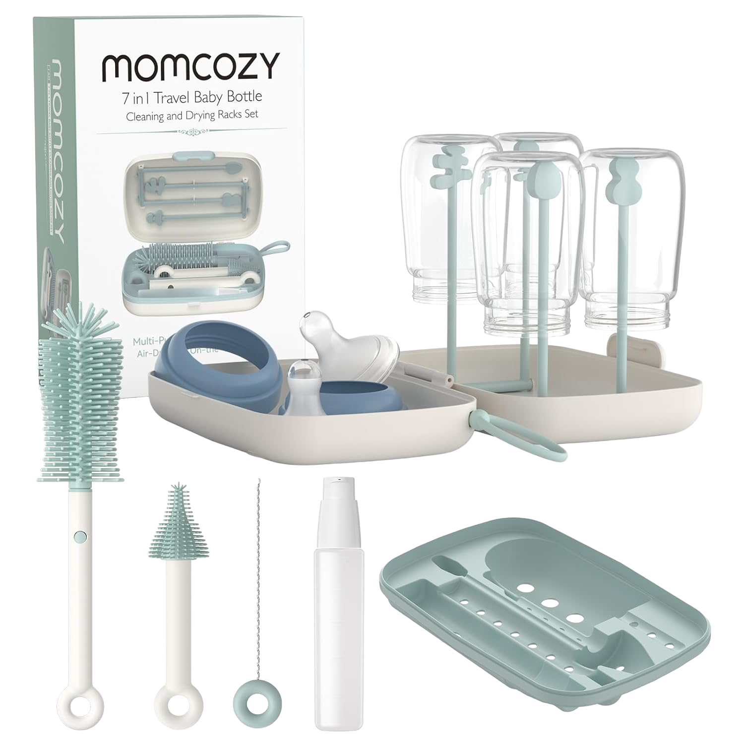 Instead of scrubbing bottles in the hotel bathroom sink at weird angles, set up a mini bottle-washing station: